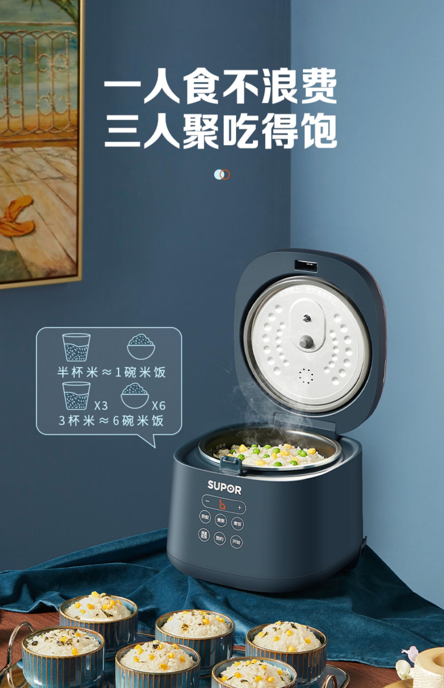 苏泊尔电饭煲家用小型智能迷你全自动蒸饭多功能蒸煮饭锅1-3人