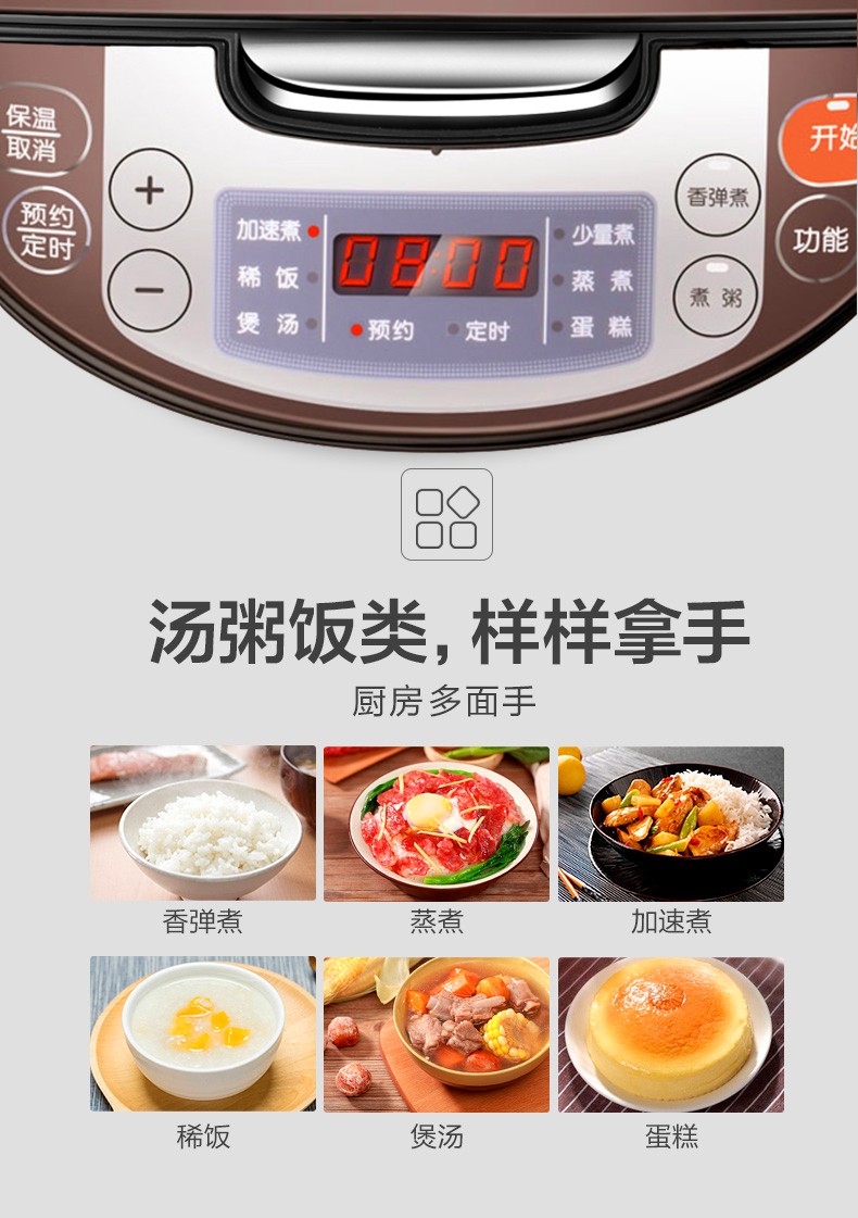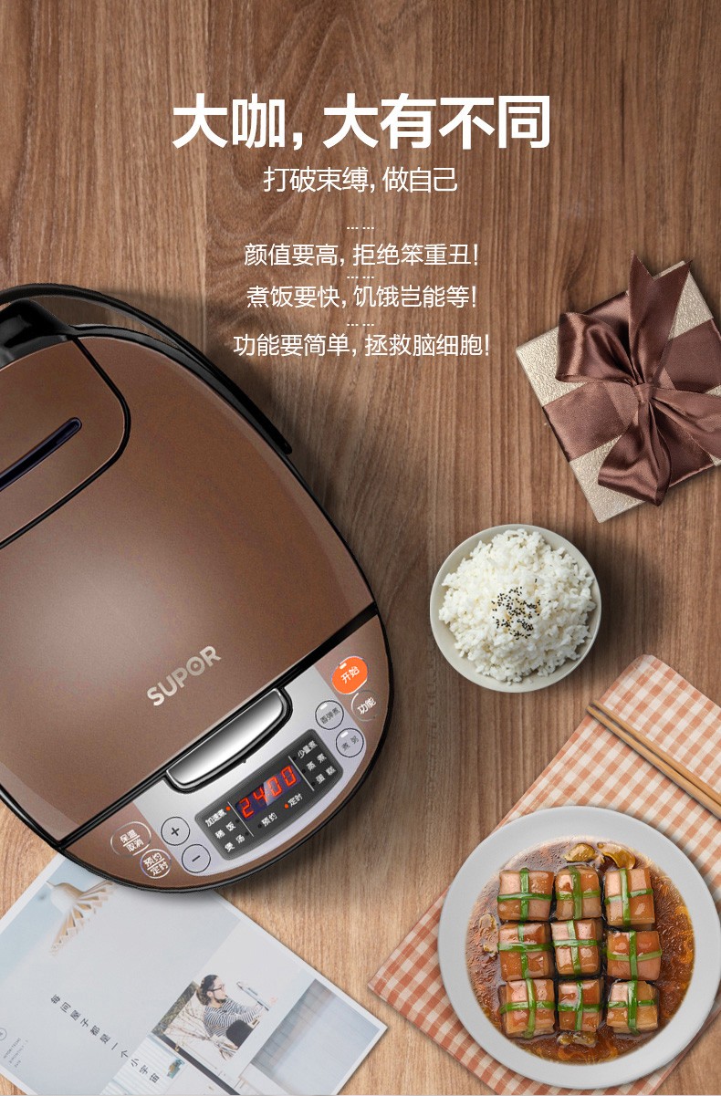 苏泊尔电饭煲家用4L升多功能智能电饭锅大容量快速煮饭煲汤柴火...