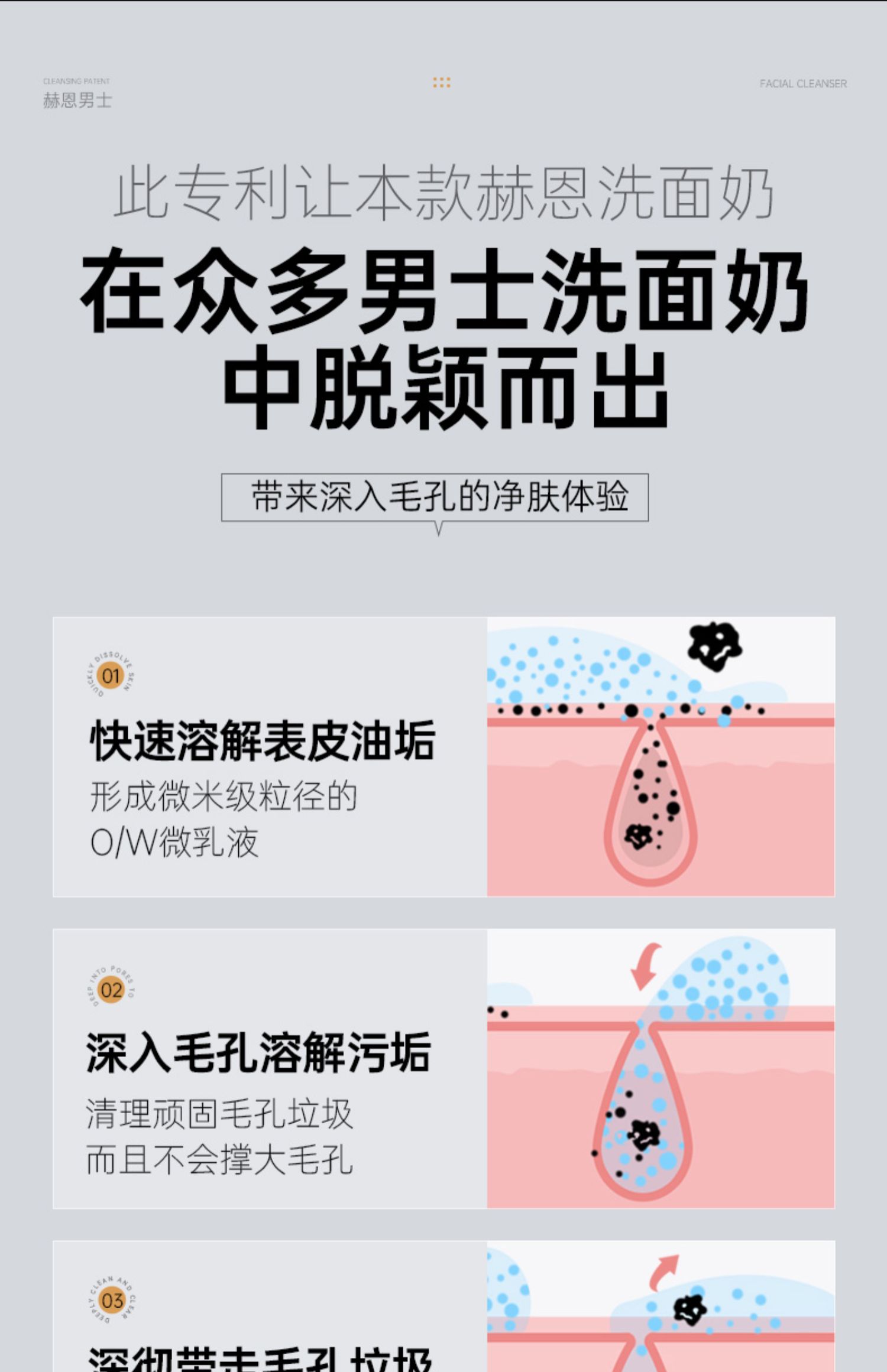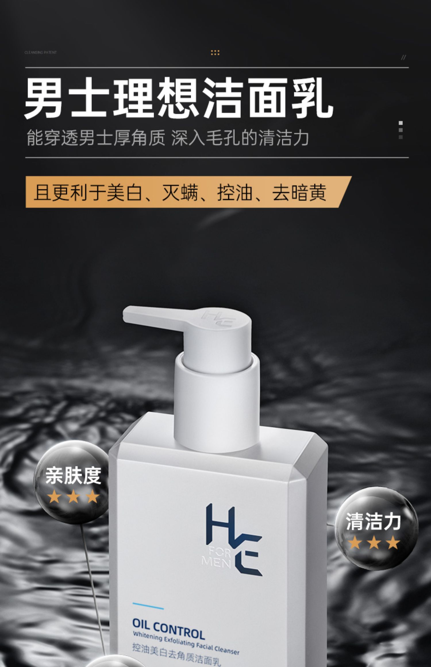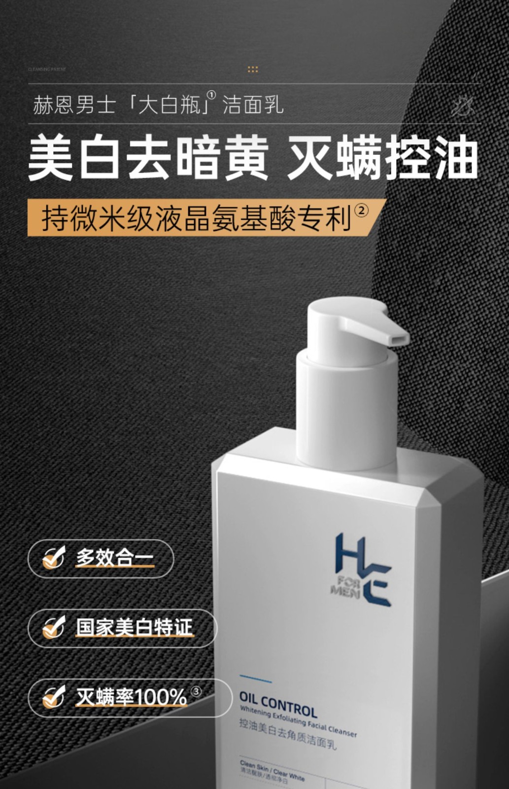 赫恩洗面奶男士专用氨基酸控油美白淡化痘印除螨虫护肤品洁面乳套